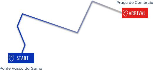 Starting at the Vasco da Gama Bridge, it ends at Praça do Comércio together with the EDP Lisbon Marathon.